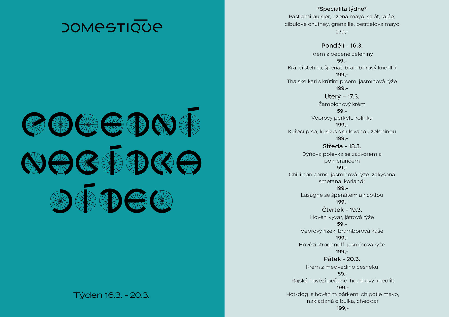 Tento týden v Domestique - Polední menu 16.3. - 20.3.